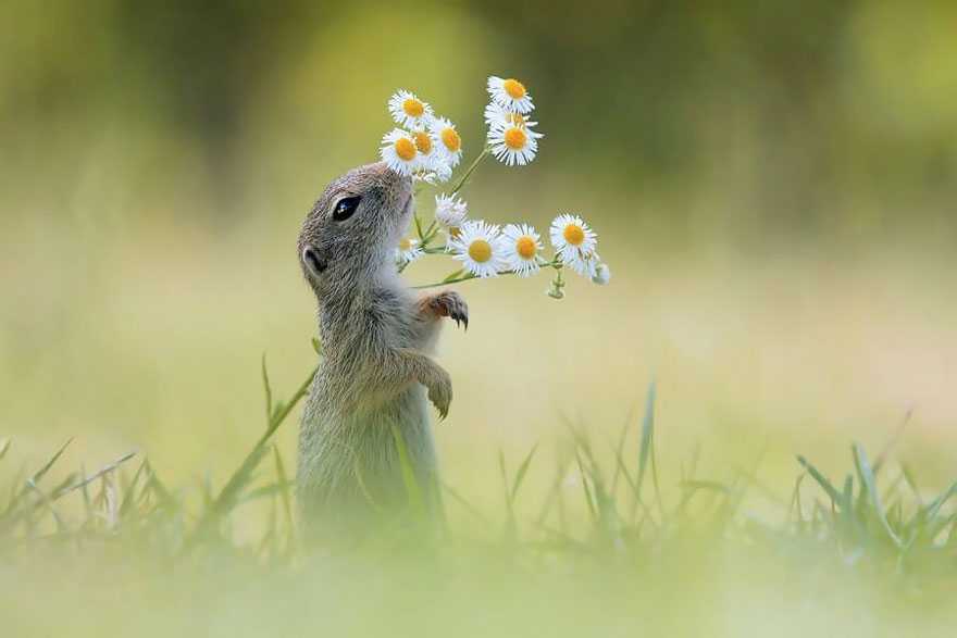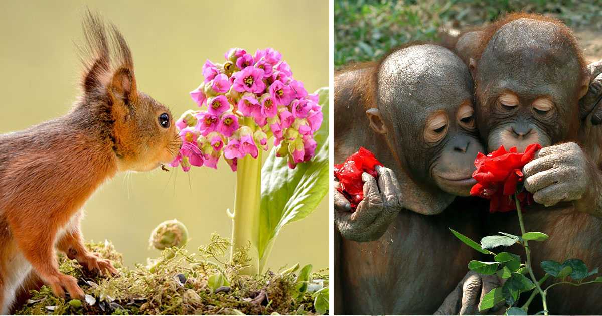 Цветята имат най-примамливата миризма, и не само за пчелите. Направихме списък със снимки, показващи животни, които се наслаждават на уханието на цвет...